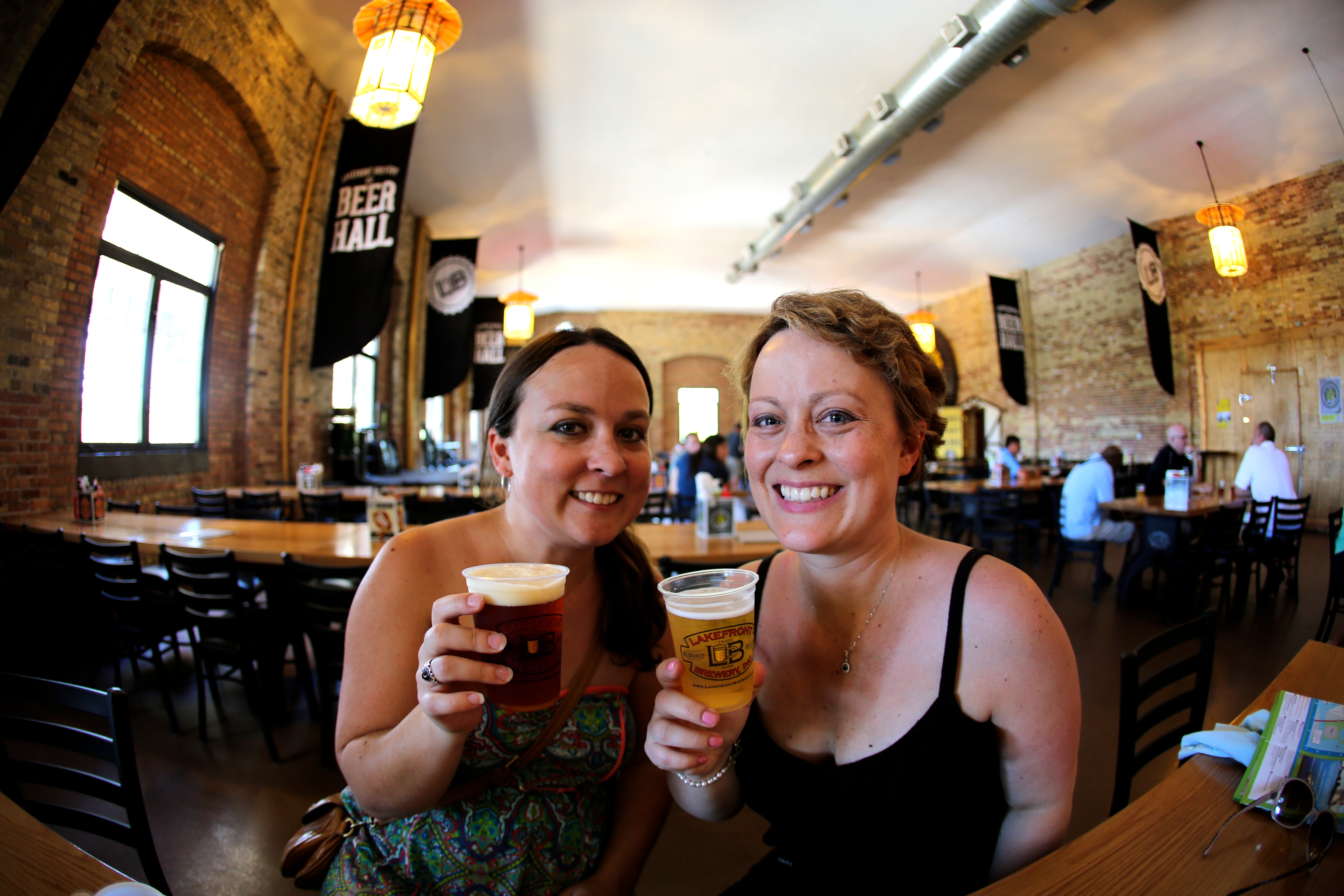 My sister accompanied us on our first stop of the romantic honeymoon trip around the lake. We both wanted to spend a few quality sissy days and also to celebrate her birthday together, so we chose Milwaukee because it was on the lake, neither of us had been there, and they also had cheap flights to her hometown of Portland. I didn´t know much about Milwaukee before visiting except that they are known for their cold winters, beer, and cheese; and after our two day visit, I have concluded that Milwaukee is a very lovely lakeside city, (at least in the summer) with, indeed, a lot of beer and cheese. The abundance of these two ingredients makes Milwaukee a perfect foodie destination. There are lots of breweries to visit, and many fun restaurants to explore. Upon arrival at our hotel, we noticed that it seemed more like a ghost town than the 28th largest city in the United States. Despite it being a warm summer´s day there were no pedestrians out and about, and hardly anyone exploring the city, even by car. We took a stroll from our hotel to the Milwaukee River, home of the misnamed Lake Front Brewery (it is NOT on the lake front, in case you are wondering…). Along the way we passed only two people. However, when we entered the beer hall, we realized that all the tourists in Milwaukee were inside drinking beer. Which is what we proceeded to do for the rest of the afternoon. Jon´s brother, Adam, had recommended Lake Front because it is a less touristy tour than say Miller´s or PBR, and they also include a mug and four pours of beer within the 7 dollar entrance fee. A pretty good deal, if you ask me. After discovering that Lake Front´s Wisconsinite summer beer was the one for me, I had three pours of it and then we proceeded/stumbled back down the river with water jugs in hand to explore Historic Old World 3rd Street. Again, we didn´t pass very many people and, befuddled, we popped into the Wisconsin Cheese Mart where we proceeded to partake of more Wisconsin beer and cheese. Delicious! That evening we ate yet again, this time dining on barbeque with Jon´s high school friend Brad and his girlfriend Cortnee at the Smoke Shack. This was followed by drinks at their stunning apartment overlooking the Summer Fest grounds along the lake. It was there that we learned that nobody was out in the streets because we arrived a day after Summer Fest ended, and everyone in Milwaukee was resting from the party. Probably bad timing on our part, but oh well!