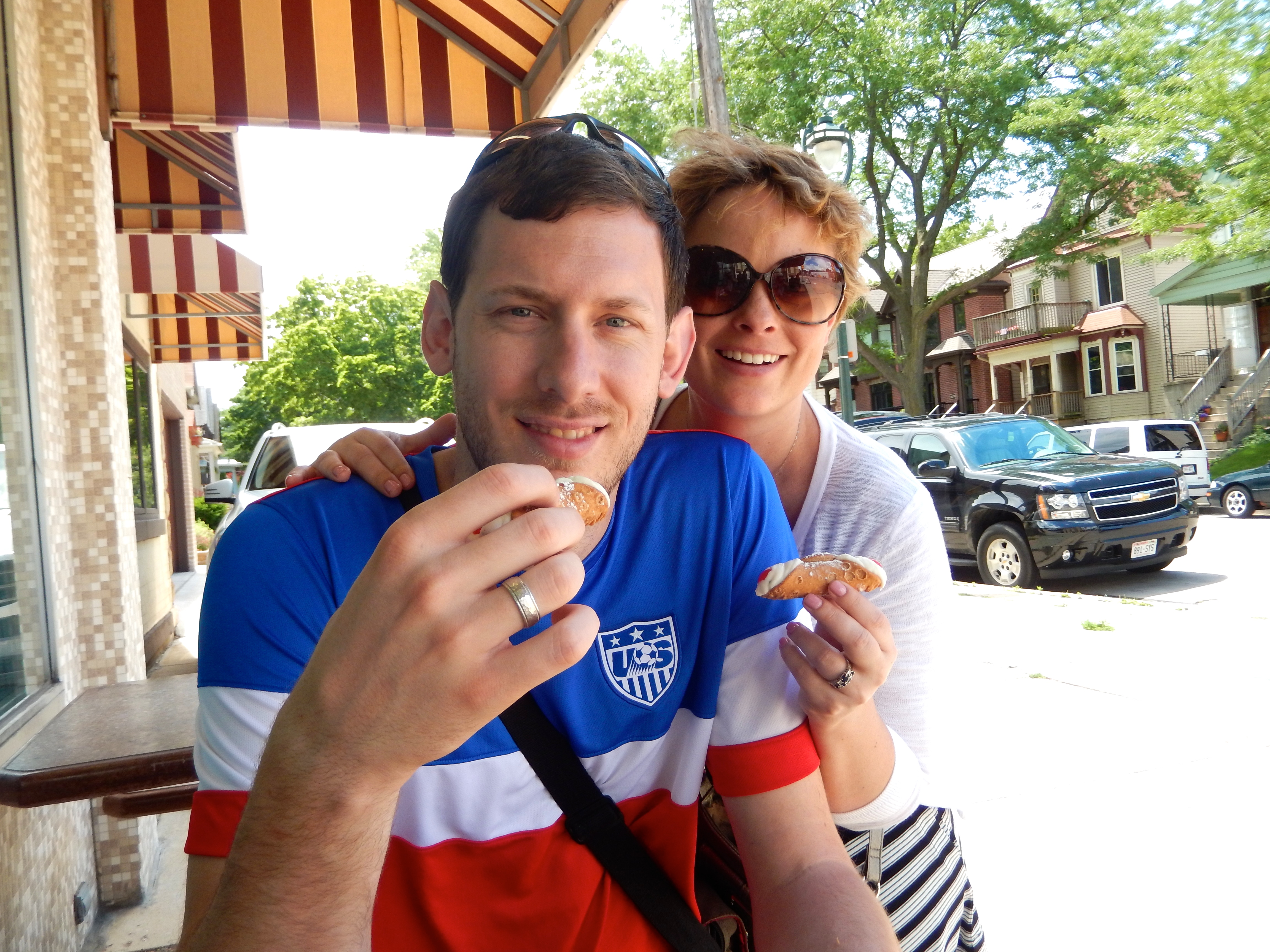 On our second day in MKE we decided that we obviously needed to eat some more, so I booked us a food walking tour of Brady Street, an old ethnic and hippie neighborhood in the northeastern part of the city. First, though, we thought we might not get enough food on the trip so we tucked into some scrumptious eggs benedicts at the Café at the Plaza, a cute little spot in the courtyard of our hotel, and then the three of us took a cab to Brady and discovered that the other two members of our food tour were indeed an old, retired couple. With grandma and grandpa in tow we forayed down the street sampling homemade pizza, authentic Mexican tacos, cannolis, olives and cured meets from a historic Italian market (Gloriosios´), corned beef sliders, and more beer. I really enjoy food tours because the guides give you a lot of the cultural history of the area, you get to focus on some interesting neighborhoods, and of course- you sample foods that are typical of the area. All of our needs were met on the Brady Street tour and it left us well positioned to stop into a local dive bar to watch Germany humiliate Brazil in one of the most embarrassing soccer matches I´ve ever watched. After we rolled ourselves home wondering whether we could possibly fit more food in our bellies, we refreshed at the hotel in time to celebrate Ali´s birthday at the beautiful and decadent Lake Park Bistro. Although our taxi driver, for the second time, had never heard of the area we were going to (??!!) we managed to direct him to Lake Park and strolled past some gorgeous homes, a stately lighthouse, several lions statues and a golf course before we found the restaurant. Lake Park Bistro is an upscale French restaurant whose chef is apparently quite famous according to the myriads of newspaper clippings in the foyer of the restaurant. And we weren´t disappointed in our meal: our only complaint was that we know nothing of French wine and therefore were unable to tackle the expensive wine menu. They kept bringing us samples and it all tasted terrible, and much too expensive. The appetizer of breaded, soft-boiled egg, on top of a salad with mushrooms and truffle oil was, however, exquisite. As were our steaks and lamb chops, cooked Medium Rare to perfection. My only complaint about the restaurant was that I was still so full from all the food that I had been eating for the past week to fully enjoy the restaurant. What I´m saying is, when you visit the Lake Park Bistro, bone up on your French wines first (or just drink beer) and come HUNGRY. It was a great end to sissy´s visit and a wonderful way to end our time in the city.