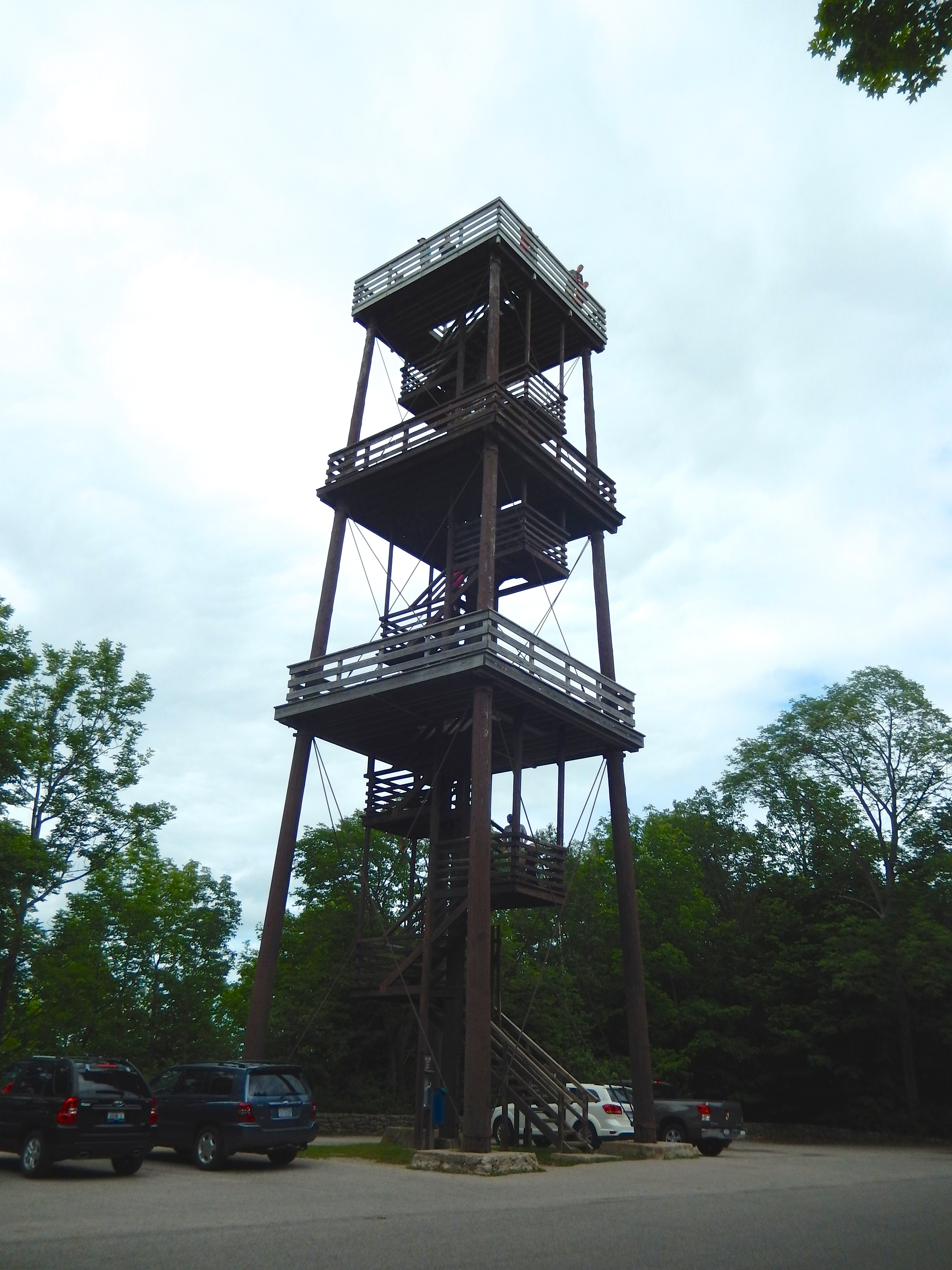 Door County is a popular vacation destination in Wisconsin, which is said to be the Martha´s Vineyard of the Midwest. We had heard a lot about the cute little towns and the beauty of the lake, so we knew that Door County needed to be a stop on our trip. However, unfortunately we only spent one night there so I´m not sure I can be a good judge of the area. It was just alright for me… The day we arrived at our hotel in Egg Harbor (Ashbrooke Manor) it was a bit overcast, so we headed to Peninsula State Park in the hopes of doing a hike before the rain set in. I had read a little about each of the places we were visiting, but I really had no expectations and nothing I really HAD to do, so it was nice just being able to decide what to do as we went. The State Park was beautiful- a very woodsy area along Green Bay with miles and miles of hiking and biking paths. It looked like a very nice place for a family to camp for a few days in the summer. Well, due to time constraints, we were only there for the three hour tour, so we headed to the scenic drive and stopped at a few of the outlooks before deciding to do the most popular hike in the park, Eagle Bluff Trail. I really enjoy relatively flat hikes that are shaded and follow a water source, so this hike met all three of my requirements. Unfortunately, due to the wet winter, the mosquitos were in full bloom, so Jon spent most of the time swatting his neck and hurrying so as not to get bitten. I, on the other hand, am so full of drugs that I must not taste good to mosquitos anymore, and so I escaped without a single bite. At the end of the two-hour hike Jon hurried to escape the bugs in the car and I decided to climb the Eagle´s Tower in order to get a view of the area from up high, above the tree line. When I reached the top of the wooden staircase a young toddler was in full meltdown mode pounding the floor and screaming at his dad that he didn´t want to climb back down- he wanted to jump!! so I snapped a picture and hurried down before I became witness to the small child flinging himself off of a wooden tower in Upper Wisconsin. Luckily, I noticed the father and son duo made it down off the tower shortly after I did, so I breathed a sigh of relief.