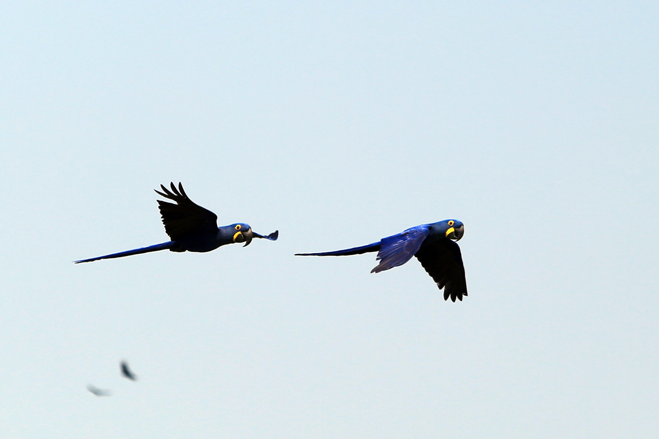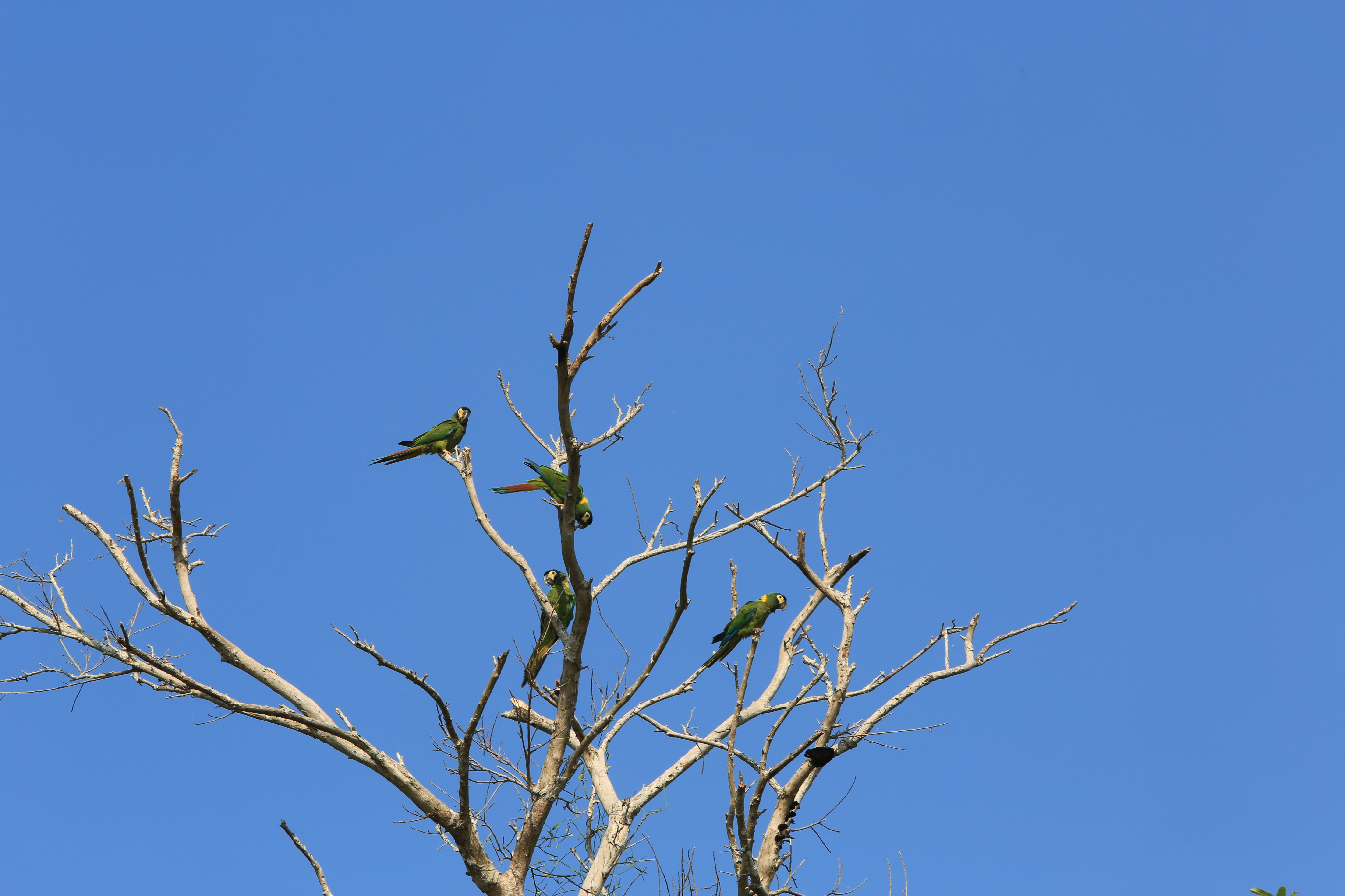 My favorite bird on the ranch was the hyacinth macaw. It was easily recognizable, even for me, because of the deep blue color of the feathers and the bright yellow markings on its face. The macaws were really noisy and kept following us from tree to tree around the ranch. I guess they were curious as to what we were up to, and it definitely seemed like they were a little ticked off when we decided to look at other birds besides them. I pretty much watched them the whole time, except for a brief while when a group of toucans also flew into the tree. What a wonder to see all of those famous, tropical birds in person, in the wilds of Brazil!