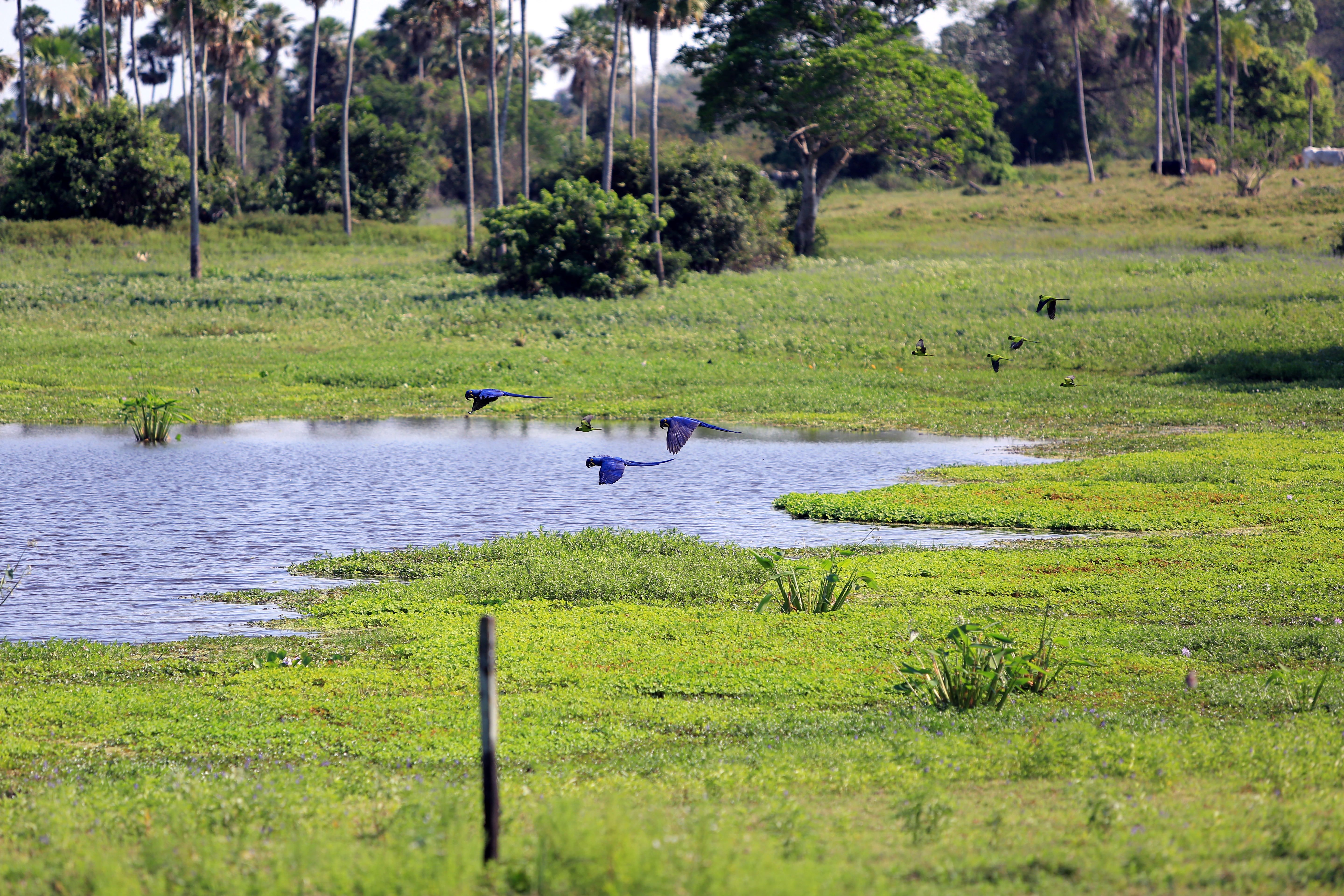 Regardless, we were out on the hunt to accomplish Jon´s goal of 100 different species. Douglas was very eager to help and took us to a large cattle ranch where we got out of the boat and actually walked around for a while. It certainly felt good to stretch my feet! The ranch was absolutely teeming with bird life and Douglas even brought his telescope so I could really appreciate the different species. Douglas told me this morning that he hoped we would become birders after this trip, and who knows: maybe we might. Well, at least I can vow to pay more attention to birds now, because they really are very beautiful up close. We saw several kinds of parakeet, some stunning red crested cardinals and several other bright and colorful birds that we hadn´t seen before.