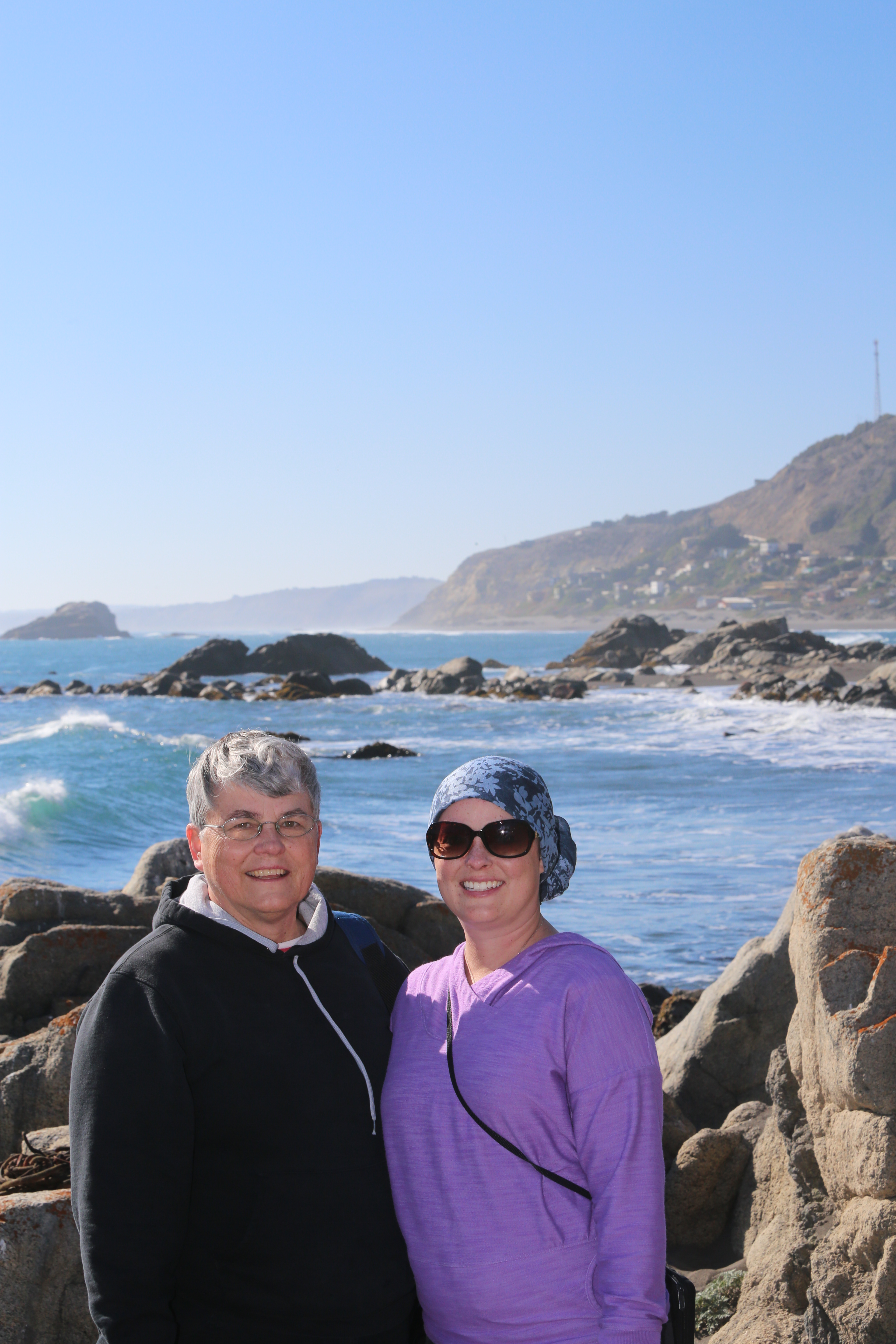As I summon up all my powers of positivity and optimism, I´ve realized again that nothing in life is without a silver lining. In addition to the early morning productivity, I have basically quit drinking. I can handle a small glass of wine every so often, but the steroids are doing a number on my liver so I have been enjoying delicious fruit juices and lots of tea instead of fermented grape juice. I am excited to start eating healthier thanks to a book that Jon´s brother and sister gave me called Kicking Cancer in the Kitchen. Thanks Adam and Kristen: it´s been really helpful. I´m also going to start working out with a trainer to try to mitigate the effects of the weight gain. It´s hard to go on a diet while hosting visitors and traveling, so I will probably gain some more weight before I can lose some. For now I´ve been absolutely ravenous and eat many meals and snacks a day: much more than I used to. I also seem to have gained a sweet tooth and have been baking, something I don´t regularly do because I don´t typically like to waste my calories on dessert. I prefer to store them up for some good Chardonnay or Brie cheese, which we enjoyed last night while watching the beautiful sunset from our ocean view in Matanzas, my new favorite place in Chile. I experienced many moments where the pink, purple and orange hues in the sky were so beautiful that I thought I’d explode with happiness. All of your love, prayers, and well wishes have been so helpful. Thank you so much for helping me to remember to laugh and to live life as I once used to. It means so much on this journey.